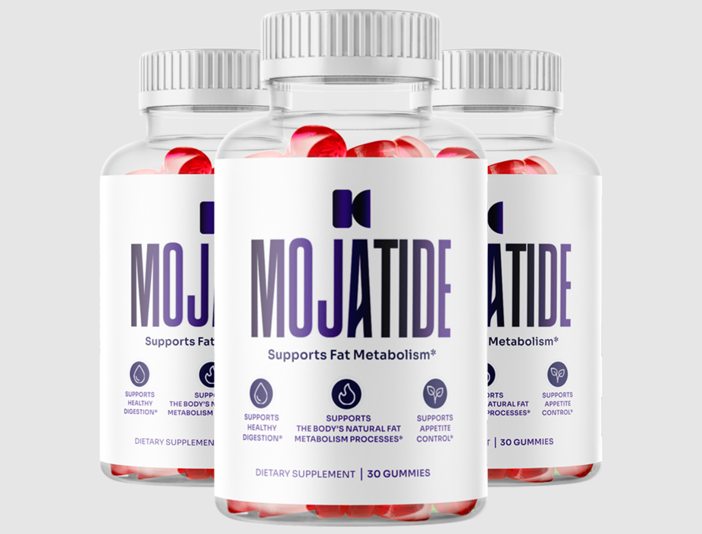 Mojatide™ is a next-generation dietary gummy crafted to support the body's natural fat-metabolism processes. Unlike harsh stimulants or restrictive crash protocols, Mojatide works with your biology — gently nudging digestion, satiety signaling, and lipid breakdown into a healthier rhythm. Each bottle contains 30 berry-flavored gummies, designed for once-daily use, with no jitters, no crash, and no chalky aftertaste.